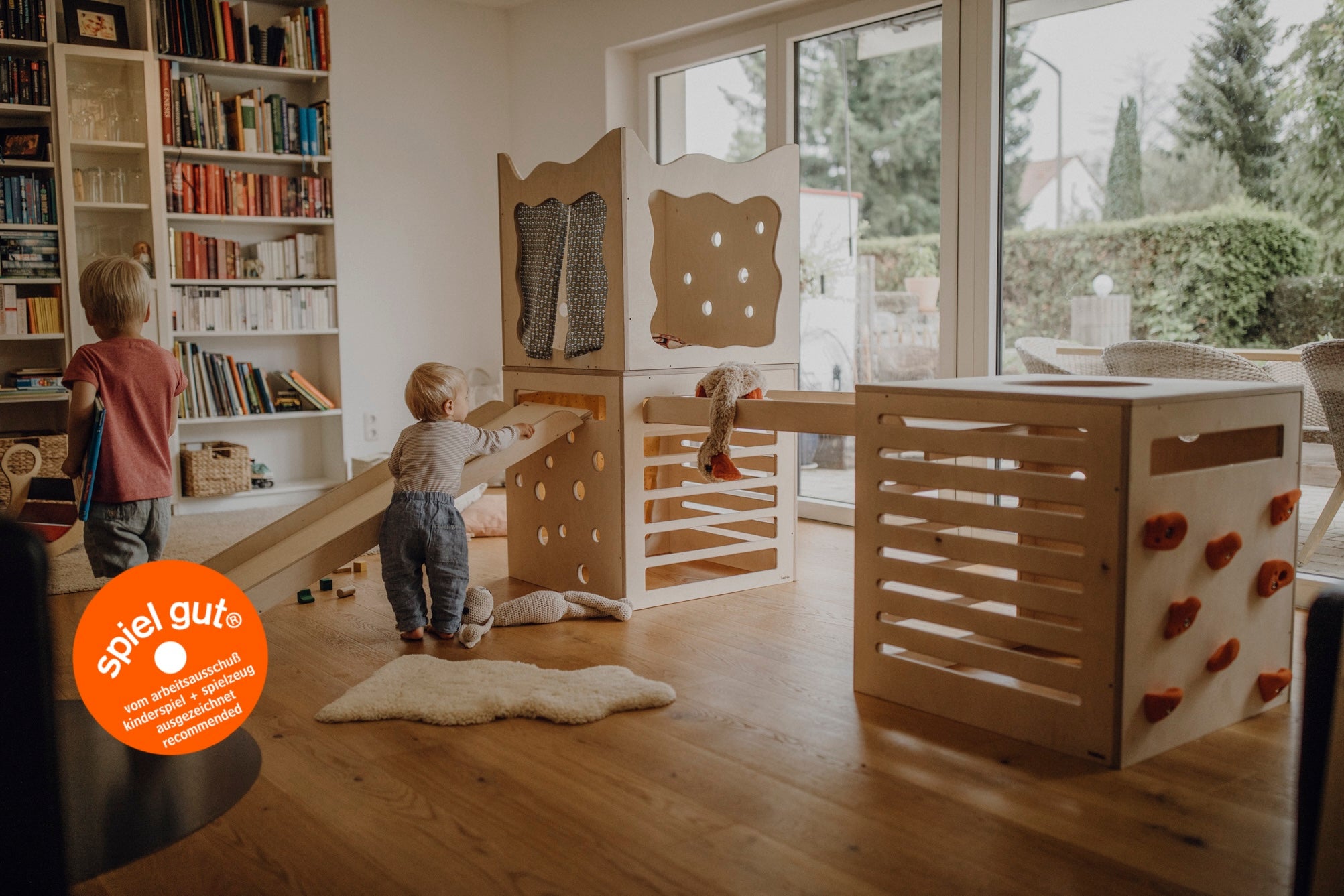 Denn wenn Termine, Wetter und Hektik den Ausflug zum Spielplatz verhindern, holt baubau das Abenteuer nach Hause. Hier können sich Kinder in einem geschützten, sicheren Umfeld austoben.